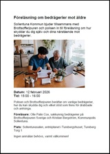 Sollentuna Kommun bjuder tillsammans med Brottsofferjouren och polisen in till föreläsning.